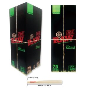 RAW Black 1 1/4 Size Pre rolled Cones (20 Pack)